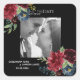 Magnifique et élégant blush, fleurs bourgogne sur fond noir. Absolument époustouflant. Ajoutez votre photo de fiançailles entourée de belles fleurs sur cet autocollant de Save the Date magnifique. Si élégant et romantique.