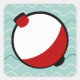 Un seul bobard de pêche rouge et blanc. "Eau" verte pâle derrière avec des lignes ondulées