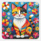 Sticker Carré Boho Folk Art Cat, Flowers & Butterfly