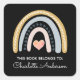 Un arc-en-ciel boho moderne et mignon à l'aquarelle sur une plaque noire pour l'étiquetage du livre de votre enfant pour les livres personnels et scolaires.