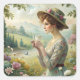 Sticker Carré Boire du thé dans le jardin