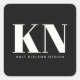 This sticker features two large bold white initials on a black rounded square background, with a small business name printed in clean spaced lettering below. The high-contrast black and white design works beautifully for packaging, mailers, product labels, or anywhere you want a polished branded look. A great pick for a small business owner looking for a simple, professional logo sticker.