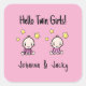 Sticker Carré Bonjour les jumelles ! , Rose, Bébés jumeaux perso