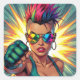Pop art bande dessinée femme style livre avec sous-coupe donnant un pow poinch supérieur arc-en-ciel lgbtqia+ lunettes de soleil stickers.