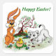 Sticker Carré Bonne Pâques ! Welpe, Küken, Hase
