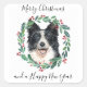 Sticker Carré Bordure Collie Elegant Chien Joyeux Noël