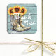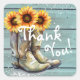 Les autocollants de sceaux d'enveloppe Bottes de soleil occidentales de campagne rustique Merci présentent une illustration aquarelle de bottes de cowgirl remplies de tournesols avec le texte "Merci" en typographie de script moderne et accentué de faux paillettin argenté. Conçu par Evco Studio www.zazzle.com/store/evcostudio