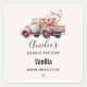 Bougie, savon, autocollants de produits artisanaux ou de cuisine avec une jolie illustration d'aquarelle blanche. Couleurs rose et rose. Camion ramassage avec un dossier/lit en bois ancien avec fleurs de cerisier.