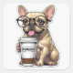 Commencez votre journée avec une dose de mignonnerie et de caféine ! Ce design amusant de style cartoon d'un bouledogue français représente un chiot beige avec des lunettes surdimensionnées, de grands yeux ronds et une langue rose qui dépasse, tout en tenant une tasse de café géante étiquetée "Pupresso". Avec une finition brillante et une ambiance ludique, c'est parfait pour les amoureux des chiens et les accros au café. Placé sur un fond blanc épuré avec un contour de style autocollant, ce chiot adorable apporte un charme excentrique partout où il va !