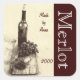 Sticker Carré Bouteille de vin, bouchons, tire-bouchon et raisin