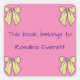 Sticker Carré Bows Jaunes et roses mignonnes Filles Noms Enfants