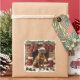 Apportez de la magie de Noël avec cet adorable sticker Boxer, montrant le chien dans un chapeau de Père Noël assis près d'une cheminée confortable. Des bas accrochés au-dessus, des cônes de pins et des lumières de Noël complètent le charme des vacances. Isolé et prêt à apporter la joie festive à votre espace!