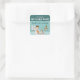 The illustration is placed toward the bottom of the sticker against a vibrant teal background. Above it, there is space to personalize the event theme and add a thank you message, making each sticker a special finishing touch for party favors, treat bags, or gifts.