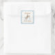 Boys Blue Plaid Cowboy 1st Rodeo Classic Sticker Carré Sweet rodéo ou western à thème anniversaire garçon avec un cowboy et cheval, en tête de police de type corde, cadre de corde et plaid de buffle bleu clair, ou en vichy arrière - plan motif. Ce premier autocollant de rodéo présente également un paysage désertique occidental peu engageant.