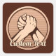 Médaille ronde en bronze avec deux mains en lutte de bras. Couleur arrière - plan personnalisée. Texte personnalisé.