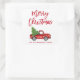 Brosse Script Aquarelle Rouge Camion Vintage avec arbre de Noël - Joyeux autocollant de nom de famille de Noël