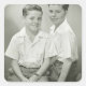 Frères (8-9) (10-11) assis en studio, sourire, (B&W), portrait | George Marks | AssetID : 57539459