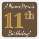 Sticker Carré Brown, Faux Gold 11e anniversaire + Nom personnali