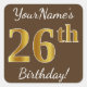 Sticker Carré Brown, Faux Gold 26e anniversaire + Nom personnali