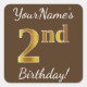 Sticker Carré Brown, Faux Gold 2e anniversaire + Nom personnalis