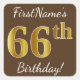 Sticker Carré Brown, Faux Gold 66e anniversaire + Nom personnali