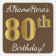 Sticker Carré Brown, Faux Gold 80e anniversaire + Nom personnali