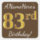 Sticker Carré Brown, Faux Gold 83ème anniversaire + Nom personna