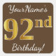 Sticker Carré Brown, Faux Gold 92e anniversaire + Nom personnali