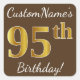 Sticker Carré Brown, Faux Gold 95e anniversaire + Nom personnali