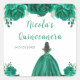 This Quinceanera sticker features faux glitter green floral flowers and a beautiful princess with brown hair and an elegant dress. This is perfect for a Quinceanera birthday party.