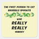 La première personne à manger des pousses de bruxelles était VRAIMENT, VRAIMENT affamé texte avec une rangée de pousses de bruxelles est un modèle de cadeau humoristique pour ceux qui trouvent les moules de légumes verts moins que savoureux.