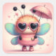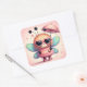 Sticker Carré Bumble Bee mignonne avec parapluie