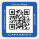 Personnalisez cet autocollant avec votre code QR dans n'importe quelle couleur, mais assurez-vous qu'il est assez sombre pour scanner. Nom de l'entreprise, site Web et code numérique sont en texte blanc avec bordure Bleu profond. Cliquez sur "Edit Using Design Tool" pour modifier les couleurs et les styles de type.