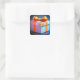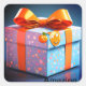 Sticker Carré cadeau avec visage, emoji wow, arc orange, haute q