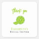 Ajoutez une touche finale douce et élégante à vos faveurs avec l'autocollant carré de remerciement Main Squeeze Green Lime Bridal Shower Favor Thanks. Conçu avec des tons verts frais de citron vert et des détails ludiques inspirés des agrumes, cet autocollant carré est parfait pour sceller les sacs de faveurs, les boîtes de friandises, les pots ou les cadeaux de remerciement. Idéal pour les douches de mariée estivales, les fêtes de jardin, les célébrations de brunch et les événements sur le thème de Main Squeeze, il contribue à créer une atmosphère lumineuse, cohérente et joyeuse. Associez-le à des invitations, des étiquettes de faveurs, des serviettes et à la décoration de table assorties pour compléter magnifiquement votre thème de mariage citronné.