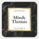 Coordonne avec le modèle de carte de visite à cadre doré faux marbre noir moderne par 1201AM. Un arrière-plan élégant et moderne en marbre noir crée un visuel luxueux sur ces étiquettes autocollantes personnalisées. Votre nom ou le nom de votre entreprise est stylisé avec élégance dans un cadre doré faux pour un logo saisissant. Ajoutez votre titre, site web ou texte descriptif autour des bords ou laissez vierge. Idéal pour être utilisé comme sceaux sur les enveloppes ou les colis, pour étiqueter des boîtes ou des produits avec votre marque, ou pour personnaliser rapidement n'importe quoi autour de votre bureau ou à la maison. Art et design © 1201AM CREATIVE