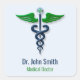 Sticker Carré Caducée Médical Élégant Ailes Vertes Croix Bleue