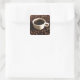 Ces autocollants affichent une tasse de café fraîchement moulu à la vapeur, blanche, sur un lit de grains de café rôtis brun foncé.