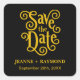 Sticker Carré Calligraphie Black Gold Wedding Enregistrer la dat