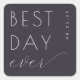 Cette élégante autocollante de mariage présente un design moderne et minimaliste avec un fond gris charbon ou bleu marine foncé. La mise en page est centrée et équilibrée, mettant en valeur la phrase "BEST DAY ever" dans un mélange de polices sans-serif grasses et de polices cursives fluides, créant un look dynamique mais harmonieux. La palette de couleurs se compose d'un texte blanc croquant qui se détache sur le fond sophistiqué, transmettant une atmosphère de célébration et de joie. Parfaite pour marquer des moments spéciaux, cette autocollante combine la simplicité avec le style, ce qui en fait un choix idéal pour ceux qui cherchent une déclaration mémorable pour leur grand jour.