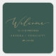 Ces délicats stickers de bienvenue mariage vert calligraphie or sont parfaits pour un mariage moderne. Le design minimaliste romantique présente une belle et élégante typographie de champagne jaune doré sur un arrière - plan vert émeraude à l'allure simple et épurée. Personnalisez ces autocollants avec l'emplacement de votre mariage, vos noms et votre date de mariage. Ces étiquettes sont parfaits pour les mariages de destination et les sacs de bienvenue des clients de l'hôtel.