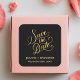 Voici notre "Romantic Calligraphy Black Gold Foil Save the Date Carré Sticker". Ces stickers exquis ajoutent une touche de romantisme à vos annonces mariages avec leur design élégant en papier noir et or. Doté d'une belle calligraphie, chaque autocollant est parfait pour sceller des enveloppes ou améliorer votre sauvegarde des cartes datées. La forme carré unique et les détails dorés chatoyants font ressortir votre faire-part, ajoutant une touche élégante et mémorable au début de votre célébration mariage. Faites de votre journée spéciale une journée inoubliable avec ce détail luxueux.