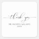 Un autocollant de remerciement de mariage noir et blanc simple et moderne, avec 'Merci' dans une belle calligraphie moderne, avec vos noms et date de mariage dans une police sans empattement légère. Facile à personnaliser. Cela fait partie d'une collection de mariage Calligraphie Typographie plus large, donc si vous aimez ce design, veuillez vérifier la collection dans notre boutique Zazzle pour plus de produits dans ce thème de design.