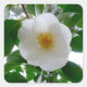 Photo d'une Camellia blanche dans un arbre contre un arrière - plan de feuilles et du ciel.