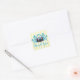 Un autocollant de remerciement avec un design d'aquarelle mignon pour les bugs d'obturateurs. Une caméra noire entourée de feuilles bleus azur et de papillons dans un joli agencement décoratif. Placé sur un arrière - plan rayé jaune. Le mot vous remercie dans une police manuscrite soignée en bleu azur.