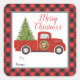 Sticker Carré Camion de Noël rouge plaid buffalo cadeau de à