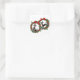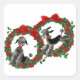 Ce joli design de Noël a deux poodles noirs gris dans le style rétro des années cinquante. L'un est assis dans une couronne sacrée et l'autre saute à travers une couronne. Les caniches ont des colliers rouges avec un spray à feuillage persistant et rouge de baies. Les couronnes sont ornées de grands arcs rouges, de perles blanches et de baies rouges.