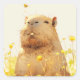 Un charmant capybara profite d'un moment de paix entouré d'un champ doré de fleurs sauvages. La lumière chaude du soleil met en valeur la texture douce de sa fourrure, tandis qu'un petit papillon flotte à proximité, ajoutant une touche de fantaisie à la scène sereine. L’expression de contenu du capybara et sa tête légèrement inclinée créent un sentiment de relaxation et d’harmonie avec la nature. Le style de rêve et de peintures met en valeur l'atmosphère chaleureuse et cosy, ce qui en fait un design parfait pour les amoureux de la nature et les passionnés de capybara.