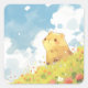 Un mignon capybara se dresse calmement sur une colline luxuriante et fleurie, en observant le ciel avec une expression attachante. L'arrière - plan présente un ciel bleu vif avec des nuages moelleux, tandis que des fleurs sauvages vibrants dans les tons jaune, rouge et blanc fleurissent tout autour. Le style douillet et peint crée une atmosphère rêvée et fantaisiste, idéale pour les amateurs de capybara comme pour les amateurs de nature.