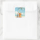 Un charmant capybara se tient debout sur une plage ensoleillée, à l'ombre d'un grand palmier qui se balance. Le capybara porte un chapeau de paille à large bord, ajoutant à l'atmosphère estivale et tropicale de la scène. L'océan d'un bleu vif s'étend à l'arrière-plan, avec des nuages blancs et duveteux dans le ciel. Ce moment adorable et serein au bord de la plage capture l'ambiance décontractée des vacances tropicales, parfait pour les amateurs de capybara et ceux qui aiment la vie insulaire.